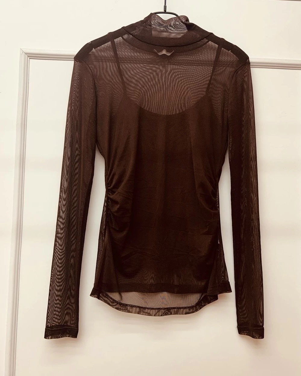 Eleve seu visual com a Blusa de Tule Marrom, uma peça que une delicadeza e modernidade para transformar seus looks.