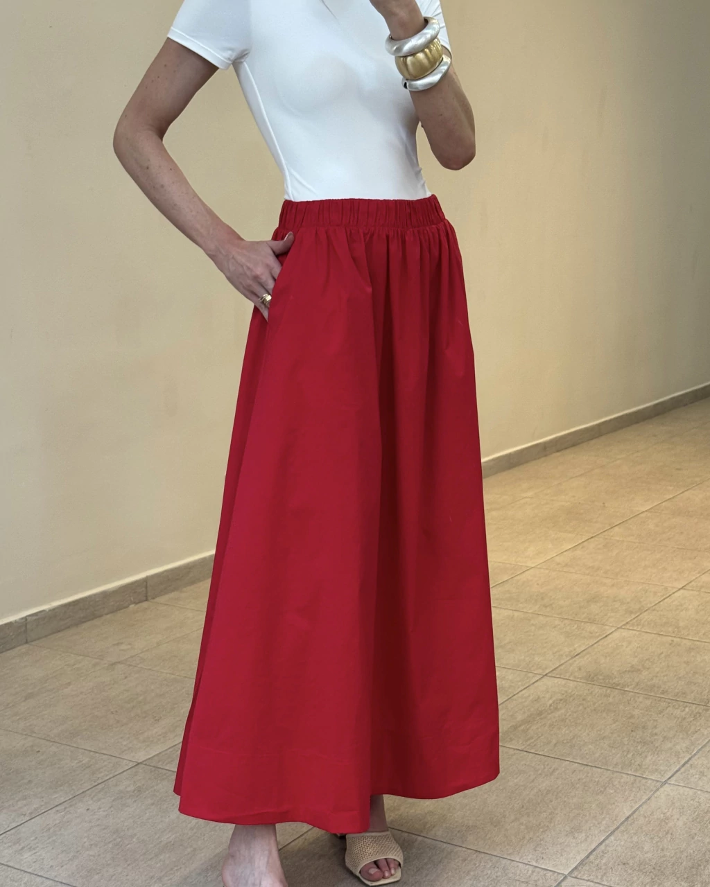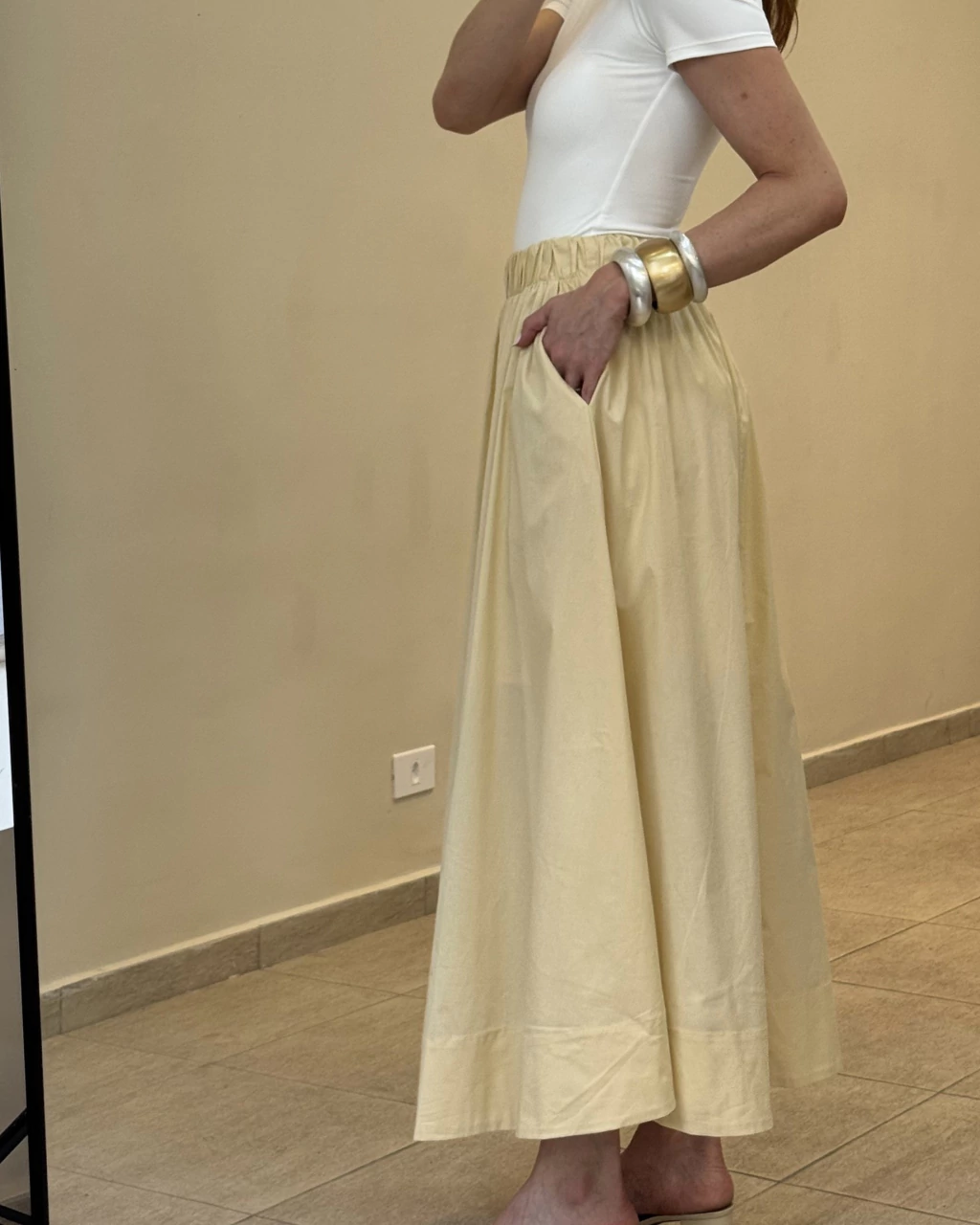 Apresentamos a Saia Midi de Algodão com Elástico na Cintura, uma peça que combina conforto, praticidade e estilo para o seu dia a dia. Ideal para quem busca uma saia com comprimento midi que valoriza a silhueta com um toque moderno e funcional.