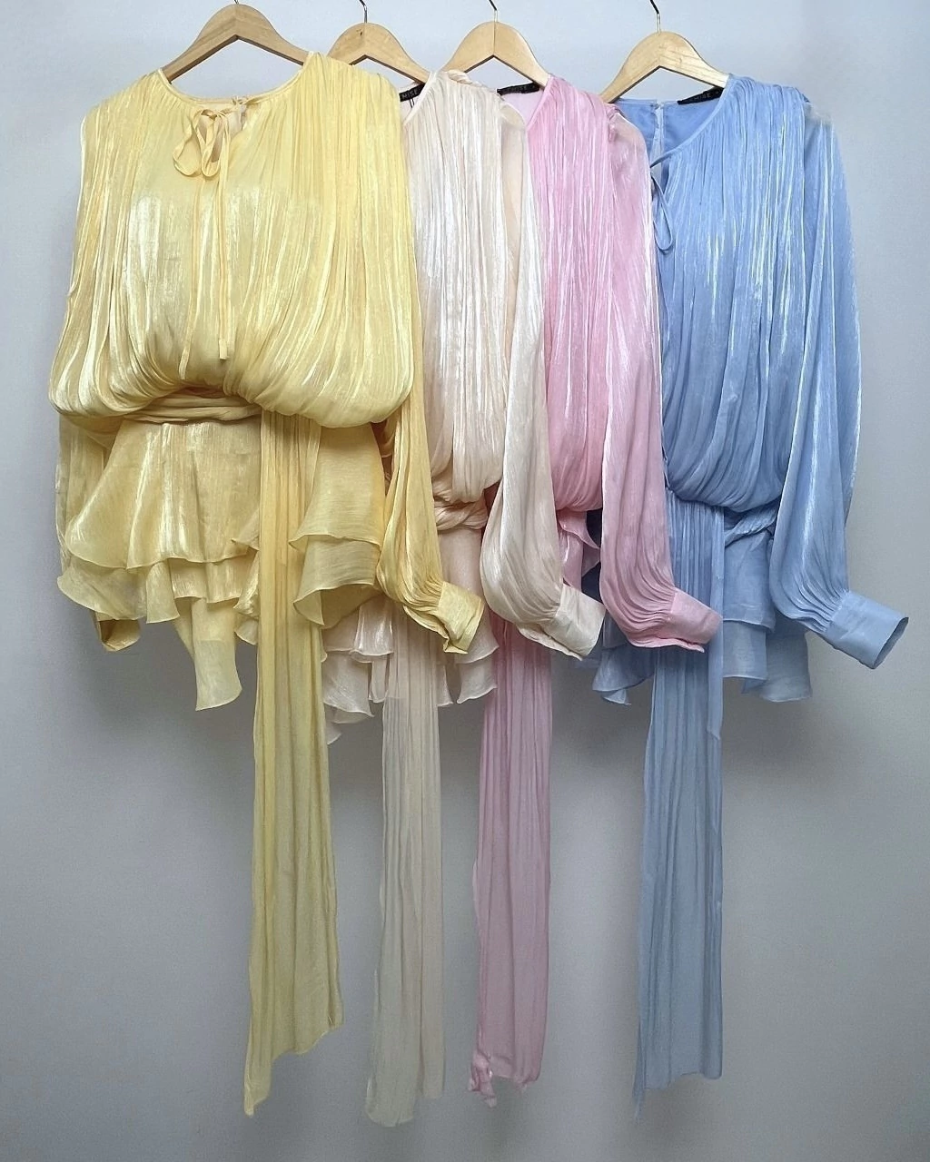 Invista no Vestido Curto Acetinado de Mangas Longas e sinta-se confiante e confortável, com uma peça que traduz sofisticação e funcionalidade em cada detalhe. Garanta já o seu e transforme seu guarda-roupa com essa peça exclusiva!