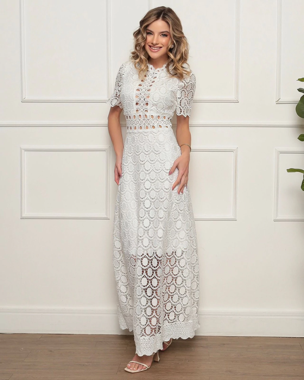 Vestido Longo de Renda Guipir: Elegância e Sofisticação