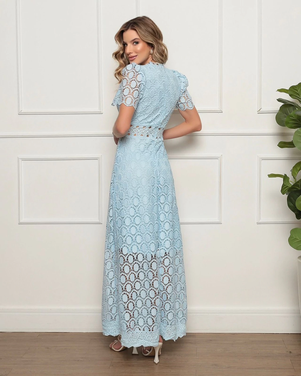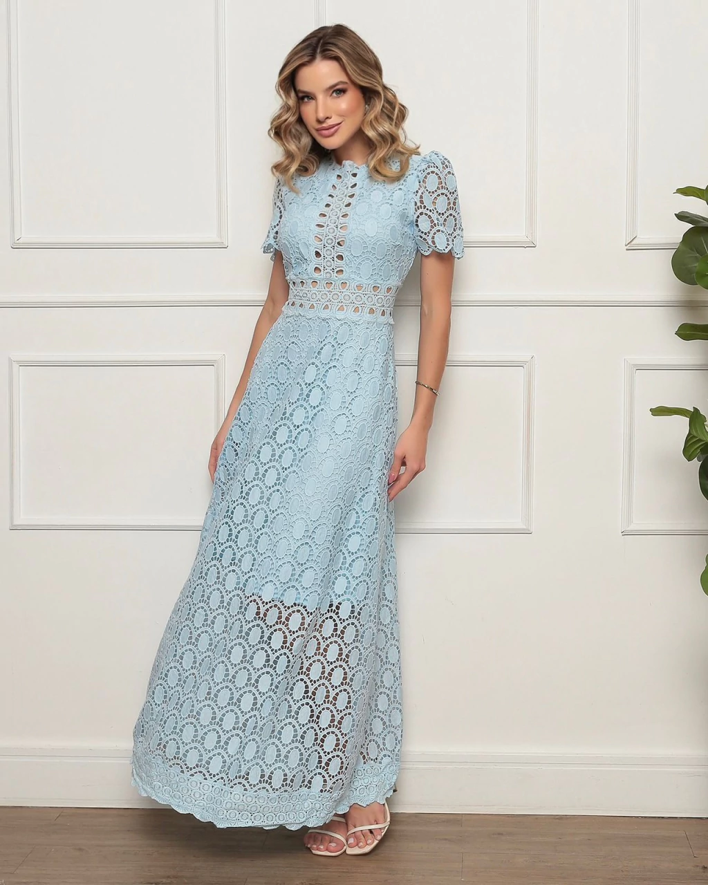 Encante-se com o charme deste vestido longo de manga princesa curta, que traz entremeios delicados no busto e cintura, valorizando sua silhueta com sutileza. O fechamento em zíper nas costas garante praticidade e caimento perfeito. Ideal para ocasiões especiais, é a escolha certa para quem busca um look feminino, sofisticado e cheio de estilo. Adquira já e brilhe em qualquer evento!
